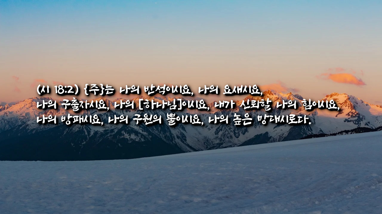 (시 18:2) {주}는 나의 반석이시요, 나의 요새시요, 나의 구출자시요, 나의 [하나님]이시요, 내가 신뢰할 나의 힘이시요, 나의 방패시요, 나의 구원의 뿔이시요, 나의 높은 망대시로다.