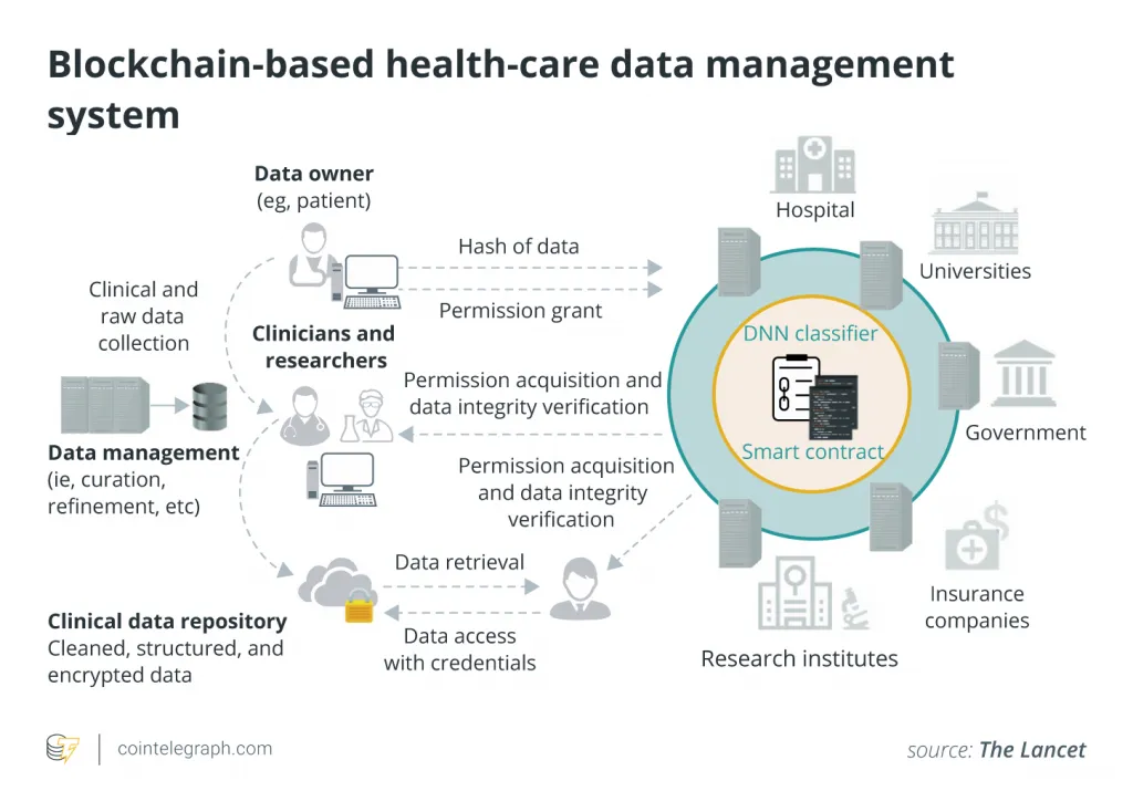 의료 시스템에도 동일한 논리가 적용됩니다. 사물인터넷(IoT) 기기와 환경에서 수집한 토큰화된 건강 데이타를 통해, 알고리즘이 사용자의 활력 징후, 습관, 소비 등을 알 수 있기 때문에 AI는 보다 맞춤화된 접근 방식을 만들 수 있습니다. “블락체인은 또한 DNA 데이타를 누가 소유하고 볼 수 있는지에 대한 규칙을 시행하는 등 의료 연구에서 더 나은 디지털 권리 관리를 촉진할 수 있다.”고 그는 썼습니다.