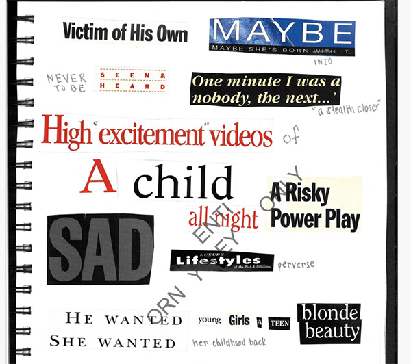 실제로 변호사와 법 집행 기관이 작성한 수천 개의 우편 파일 문서들 중에는 이름이 수정된 10대 소녀가 보관한 저널 스캔이 포함되어 있습니다. 이 저널은 잡지 컷아웃과 손으로 쓴 암호화된 메시지를 사용하여 16세 성노예의 반복적인 임신에 대한 끔찍한 이야기를 기록합니다.