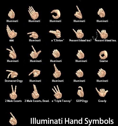 잘 드러나지 않도록 양손 모두 구부려서, 지팡이 쥔 오른손으로 벌칸(Vulcan) 핸드 싸인(히브리어 알파벳 ‘쉰’ 핸드 싸인, 겉으로 축복 제스처로 위장한 ‘사람의 등 뒤에서 파괴하기’), 왼손으로 일루미나티(프리메이슨 상부) 싸인을 하고 있는 찰스 스퍼전