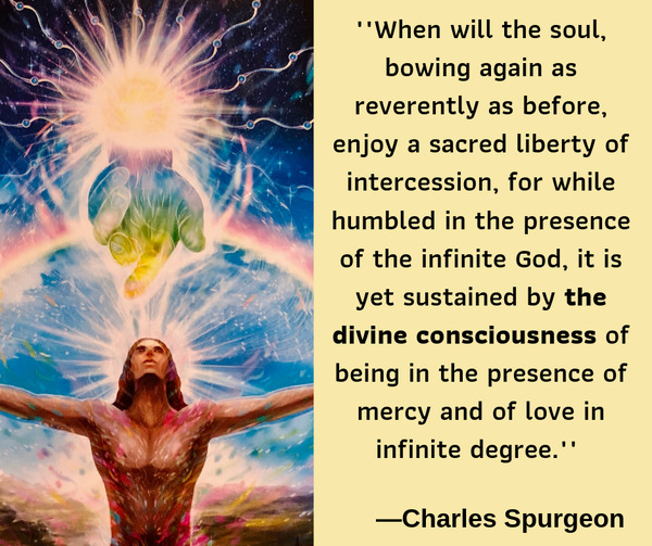 그러면 혼은 이전처럼 경건하게 다시 엎드려 간구의 신성한 자유를 누릴 것이다. 무한한 신(the infinite God) 앞에서 겸손해지는 동안에도, 무한한 정도(infinite degree)의 자비와 사랑 앞에서 신성한 의식(the divine consciousness)으로 유지되기 때문이다.” – 찰스 스펄전